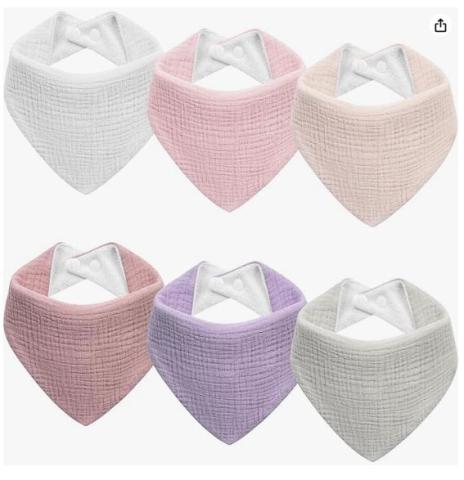 Bavoirs Bébé - Mousseline de Coton Absorbant - Triangle Réglables Doux Pour Garçons et Filles - Lot de 6.