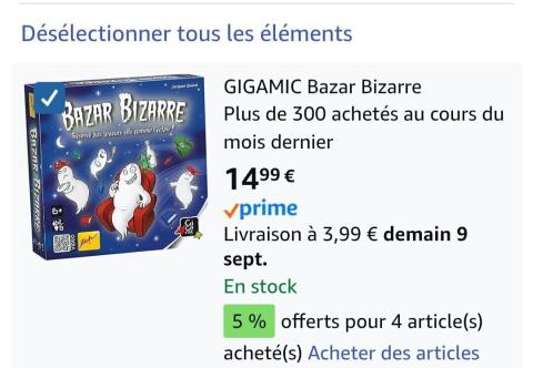 Ce produit est extrait d'une liste de cadeaux (Anniversaire, Noël, ...) déposée sur Kadolog. Kadolog permet de créer des listes de cadeaux (Anniversaire, Noël, ...) en toute liberté. Il est possible d'ajouter toutes vos envies cadeaux et de recevoir les dons directement sur votre compte. Avec les dons reçus, vous êtes alors libre d'aller acheter vos produits (comme ce 'Bazar Bizarre ') où et quand vous le souhaitez.