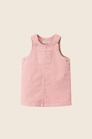 Petite robe mi-longue structurée, à bretelles réglables sur deux hauteurs grâce à de boutons nacrés. Une poche plaquée sur la poitrine et deux petites poches à l'arrière. Petites ouvertures boutonnées sur les côtés pour faciliter l’habillage. Coupe légèrement évasée. Confectionnée en velours côtelé de coton, une matière chaude, douce et résistante.