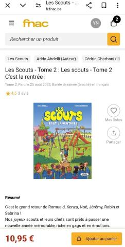 Ce produit est extrait d'une liste de cadeaux (Anniversaire, Noël, ...) déposée sur Kadolog. Kadolog permet de créer des listes de cadeaux (Anniversaire, Noël, ...) en toute liberté. Il est possible d'ajouter toutes vos envies cadeaux et de recevoir les dons directement sur votre compte. Avec les dons reçus, vous êtes alors libre d'aller acheter vos produits (comme ce 'BD Les scouts Tome 2 C'est la rentrée ') où et quand vous le souhaitez.