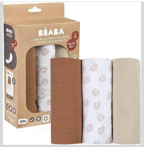 Béaba, Set of 3 Organic Cotton Muslin Swaddles, Multi-Purpose: Bib, Travel Blanket, Cuddly, Ultra-Soft, Breathable, 70 x 70 cm, Ecological and Healthy, Hedgehog Design : Amazon.com.be: Baby Products