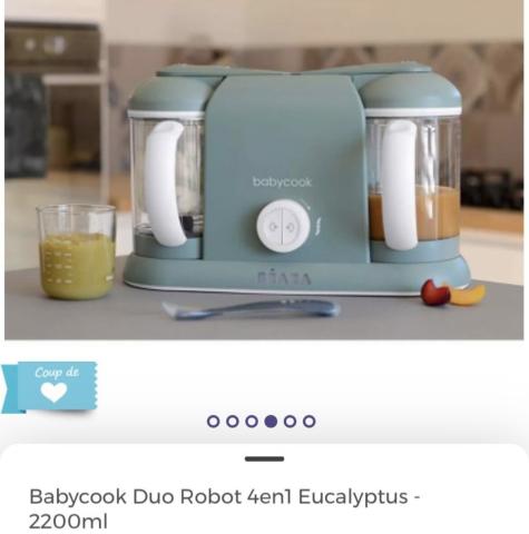 Ce produit est extrait d'une liste de naissance déposée sur Kadolog. Kadolog permet de créer des listes de naissance en toute liberté. Il est possible d'ajouter toutes vos envies cadeaux et de recevoir les dons directement sur votre compte. Avec les dons reçus, vous êtes alors libre d'aller acheter vos produits (comme ce 'Beaba - Babycook Duo ') où et quand vous le souhaitez.