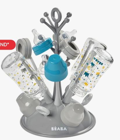 Faites sécher les biberons, sucettes, anneaux de dentition... sur ce grand égouttoir design de Béaba qui peut accueillir jusqu'à 6 biberons.