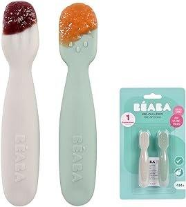 BEABA, Lot de 2 cuilleres bebe 1er age, Pré-cuillères en Silicone, Couverts Bébé, Dès 4 Mois, Forme Ergonomique, Textures Différentes, Manche Ergonomique, Sage green/Velvet grey : Amazon.com.be: Bébé et Puériculture
