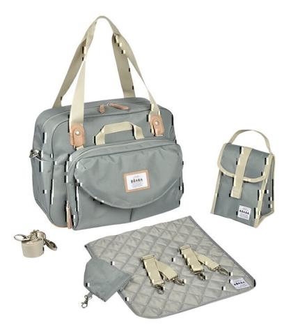 Avec pochette repas isotherme, étui à sucette, matelas à langer amovible et bandoulière amovible.