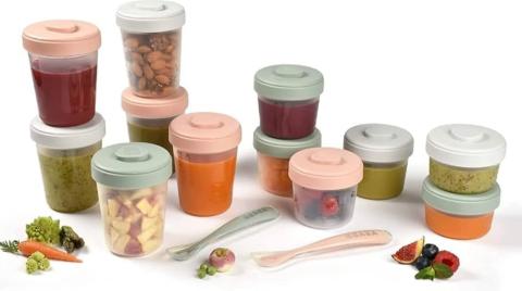 BÉABA, Set of 12 Storage Containers and 2 Feeding Spoons Silicone Stackable Containers 100% Airtight Freezing Breast Milk 2 x 90ml + 4 x 150ml + 6 x 250ml Eucalyptus : Amazon.ie: Baby Products