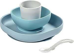 BÉABA, Set Vaisselle Silicone Repas Bébé, Avec Ventouse, Anti-dérapant, 4 Pièces, Assiette + Bol+ Verre + Cuillère, Silicone Saine et Durable, Compatible lave-vaisselle, Micro-onde, Jungle : Amazon.com.be: Bébé et Puériculture