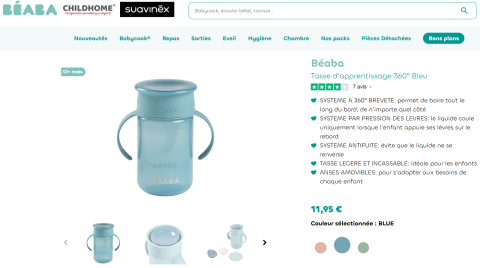 Ce produit est extrait d'une liste de naissance déposée sur Kadolog. Kadolog permet de créer des listes de naissance en toute liberté. Il est possible d'ajouter toutes vos envies cadeaux et de recevoir les dons directement sur votre compte. Avec les dons reçus, vous êtes alors libre d'aller acheter vos produits (comme ce 'BEABA Tasse d'apprentissage 360° ') où et quand vous le souhaitez.