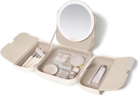 AMIRO M2 LumoCube Miroir de Sac LED Portable avec 5 Niveaux de luminosité, Organisateur de Trousse de Maquillage avec Miroir-Blanc