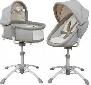 BEBE2LUXE 4 en 1 Multifonction Balancelle électrique, Berceau réglable, Chaise Haute et Transat (0‑15 kg), Harnais 5 PTS, réglage Hauteur/Dossier, 6 Vitesses + Vibration, USB/MP3, télécommande (Gris) : Amazon.fr: Bébé et Puériculture