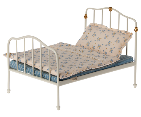 Un lit parfait pour une bonne nuit de sommeil. Le linge de lit est fait à partir des magnifiques tissus Maileg, tous différents mais choisis attentionement pour créer un ensemble. Ce lit convient aux plus grandes souris et aux "bunnies" taille Micro. - Maileg France