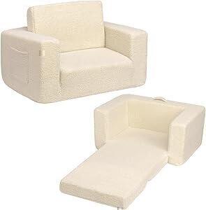 BEJOY Canapé-lit 2 en 1 en fourrure pelucheuse pour enfant convertible en siège tout-petit, cadeau d'anniversaire pour filles et garçons, Beige clair : Amazon.com.be: Cuisine et maison