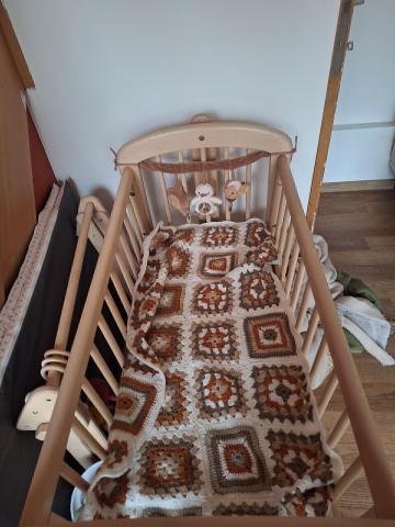 On a eu la chance que les anciens proprios nous laissent un berceau. On a fait quelques achats pour l'utiliser : matelas, alèse et housse. On a hâte qu'elle dorme à côté de nous quand on joue à un petit jeu (on espère trop là? :D )