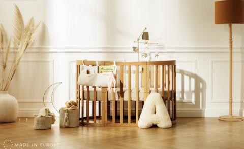 Berceau évolutif : berceau nouveau né, berceau plus grand, lit au sol.