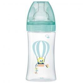 La technologie anti-colique est directement intégrée à la tétine grâce à sa double valve qui favorise une circulation d’air régulière dans le biberon et non dans le ventre de bébé.