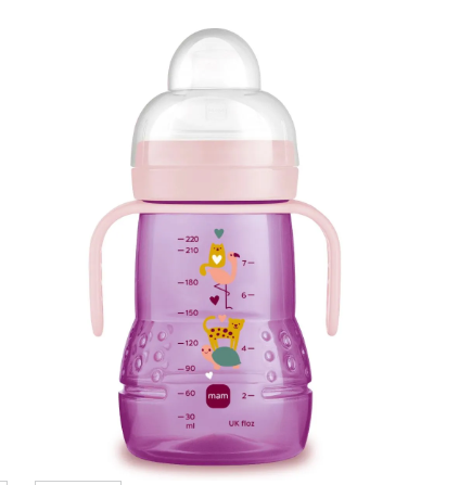 Antifuite et facile à tenir, le biberon de transition MAM est le biberon idéal pour boire seul.