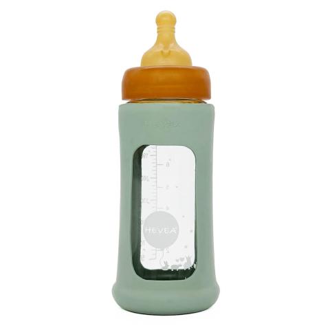 Biberon en verre avec housse de protection - powder pink - 250 ml bleu - Un biberon en verre Zéro plastique qui resiste aux chocs ! Le Biberon Powder 250ml de HEVEA est composé d'un biberon en verre borosilicate qui est reconn