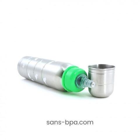 Biberon inox isotherme sans BPA ni plastique, pour bébé et bambin, grande contenance 270 ml : garde les boissons à bonne température plusieurs heure. Pièces de rechange et accessoires Organic Kidz sur sans-bpa.com.