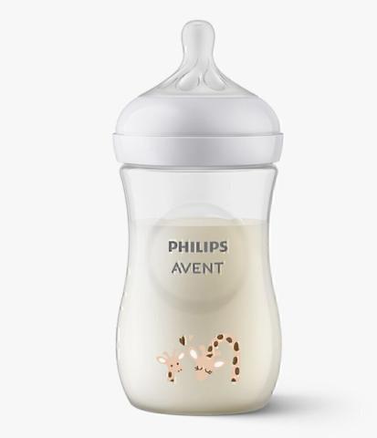 Pour votre petit bout de 1 mois, adoptez le biberon Natural Response Avent et ses adorables girafes, qui respectera son rythme de consommation !