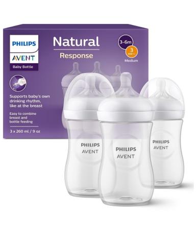 Biberon Philips Avent Natural Response - 3 Bouteilles - 260 ml - 1+ Mois - Tétine Speed 3 - SCY903/03