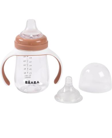 Biberon/Tasse d'apprentissage 2 en 1, Tasse Paille Enfant, 100% étanche, Anti-fuite, Facile à Ouvrir, Poignées amovibles, Tritan et Silicone, 210 ml, Terracotta