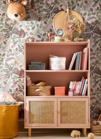 Un joli meuble coloré, qui apporte un côté rétro à la déco avec ses portes en cannage et ses poignées dorées. Parfaite pour accueillir livres et jouets, elle est assortie à l'armoire Poésie, pour une chambre romantique et tendance.