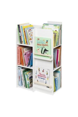 Dans cette bibliothèque multi-faces, les livres sont facilement accessibles pour les enfants. Deux porte-livres permettent de proposer des livres à votre enfant, cela permettra de varier les lectures.