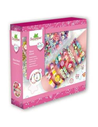 Découvrez le coffret Bijoux Kawaii de la collection Bijoux Box de Sycomore, un coffret créatif permettant aux enfants dès 7 ans de réaliser de nombreux bracelets colorés et très tendance.