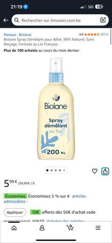 en toute liberté. Il est possible d'ajouter toutes vos envies cadeaux et de recevoir les dons directement sur votre compte. Avec les dons reçus, vous êtes alors libre d'aller acheter vos produits (comme ce 'Biolane Baby Detangling Spray, 98% Natural, No Rinse, French Linen Formula : Amazon.com.be: Beauty