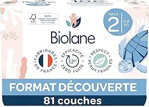 BIOLANE - Couches bébé taille 2 (3-6kg) - Peaux Sensibles - Ultra-Absorbant, Pas de Fuite, jusqu'à 12h au Sec - Confort & Protection - Demi pack 81 couches - Fabriqué en France : Amazon.fr: Hygiène et Santé