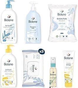 BIOLANE - Kit Naissance Premiers jours - Bébé - 216 Lingettes - Eau pure - Gel Lavant - Liniment - Crème change - Coffret Bébé - Peaux Sensibles