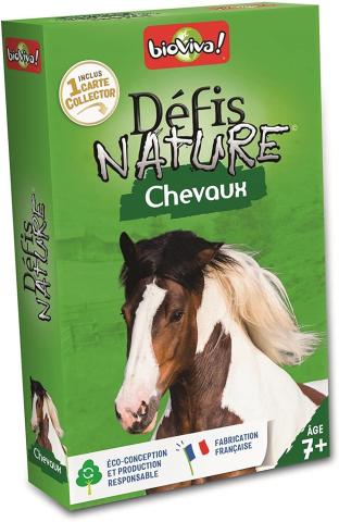 Défis Nature vous emmène à la rencontre des chevaux les plus majestueux. Découvrez les espèces les plus rares, puis pariez sur les points forts de vos équidés pour collecter toutes les cartes du jeu et remporter la partie. Fabriqué en France