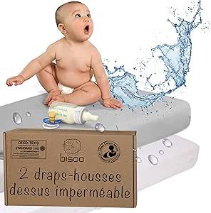 Bisoo Drap Housse 75x95 / 75x100 Impermeable - Drap Housse Alese tege Matelas Bebe pour Tour de Parc et Lit Bebe - 100% Jersey Certifié Oeko-Tex - Lot de 2 Blanc et Gris 95x75 / 100x75 cm : Amazon.com.be: Cuisine et maison