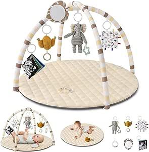 Blissful Diary Tapis d'éveil Bébé avec Arche Amovible, Tapis Éveil Bébé 6 Jouets - Développement Sensoriel et Moteur Progressif, Cadeau pour Nouveau Né, Enfant, Fille et Garçon, Beige : Amazon.fr: Bébé et Puériculture