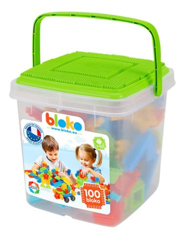 100 Bloko faciles à assembler, tellement de possibilités ! Votre petit bout a de quoi construire, déconstruire, reconstruire, se développer et s'amuser à l'infini avec le contenu de cette boîte à poingée et couvercle en plaque de base verte.
