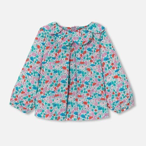 Coupe soignée et détails travaillés, la blouse bébé fille en tissu Liberty séduit par son élégante décontraction. Manches volantées, plastron carré et découpes froncées, portée avec un short et des sandales, elle accompagnera la petite fille jusqu'à la rentrée.-Blouse bébé fille en coton-Manches volantées-Découpes froncées devant et dos-Ouverture boutonnée au dos-Tissu Liberty Betsy coloration exclusive Jacadi