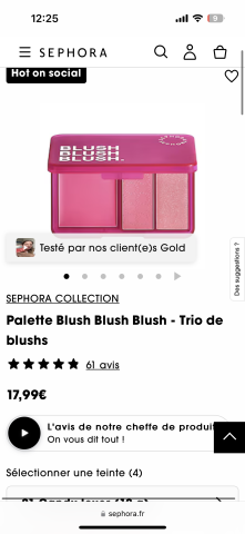 Ce produit est extrait d'une liste de cadeaux (Anniversaire, Noël, ...) déposée sur Kadolog. Kadolog permet de créer des listes de cadeaux (Anniversaire, Noël, ...) en toute liberté. Il est possible d'ajouter toutes vos envies cadeaux et de recevoir les dons directement sur votre compte. Avec les dons reçus, vous êtes alors libre d'aller acheter vos produits (comme ce 'Blush ') où et quand vous le souhaitez.