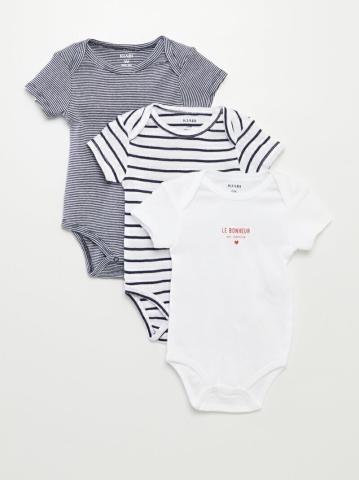 Un joli lot de 3 bodies parfait pour offrir à bébé.- Lot de 3 bodies- En coton- Col rond- Manches courtes- Ouverture par pressions à l'entrejambe- 1 avec message imprimé à l'avant- 2 imprimés all over