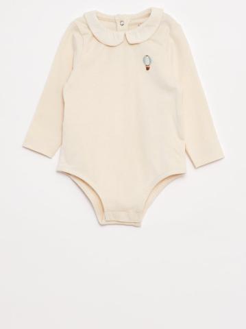 Un body très coquet pour votre bébé ! - Body - Maille jersey - Col claudine - Broderie poitrine - Manches longues - Ouverture pressionnée au dos - Entrejambe pressionnée