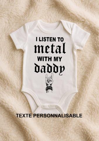 Pour les futurs petits fans de metal dès la naissance ! Transforme les premières tenues de bébé en une déclaration de style et de passion. Ce body amusant affiche fièrement : « J’écoute du metal comme Papa » Un clin d’œil décalé et affectueux à la passion musicale partagée, parfait pour les