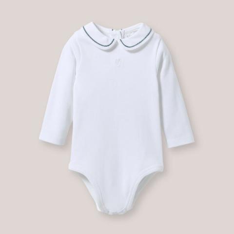 Sous une salopette, un pull ou un cardigan, ce body met de l'élégance au quotidien avec son col raffiné. Col broderie point chaînette. Monogramme brodé Ouverture pressionnée au dos et à  l'entrejambe pour un habillage facilité Pensées pour durer, nos pressions sont pratiques et résistantes