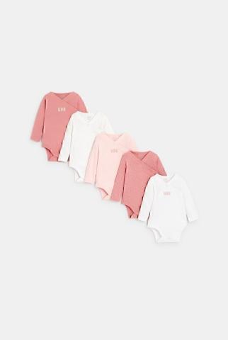 Indispensable dans le trousseau de naissance des petits, un lot de 5 bodies en jersey de coton doux. Manches longues. Fermeture croisée pressionnée idéale pour habiller facilement les nouveaux-nés.