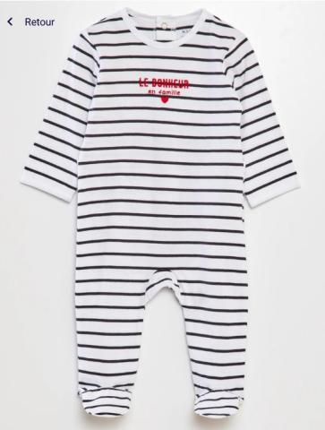 Ce produit est extrait d'une liste de naissance déposée sur Kadolog. Kadolog permet de créer des listes de naissance en toute liberté. Il est possible d'ajouter toutes vos envies cadeaux et de recevoir les dons directement sur votre compte. Avec les dons reçus, vous êtes alors libre d'aller acheter vos produits (comme ce 'Body pyjama ') où et quand vous le souhaitez.