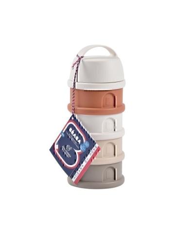 Boîte distributrice Beaba - Blanc / Terracotta avec quatre compartiments de 330 ml étanches à l'air et aux fuites. Pratique et peu encombrante, elle est idéale pour les déplacements !