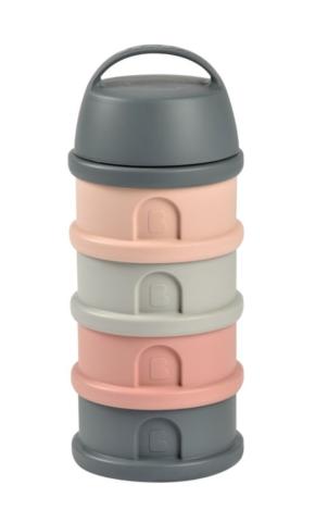 Boîte doseuse de lait 4 compartiments empilables Gris/Rose I Béaba