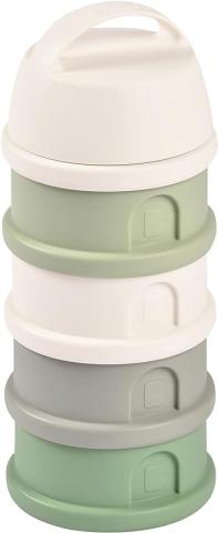 BÉABA, Boite doseuse de lait empilable, 100% hermétique, 4 compartiments, Made in France, Grande contenance, Usage Evolutif Cotton white/Sage green