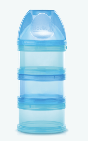 Boîte doseuse de lait à 3 compartiments, coloris Bleu.