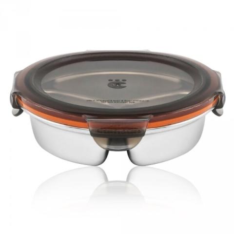 Boîte hermétique en inox ronde avec 3 compartiments. 280ml.