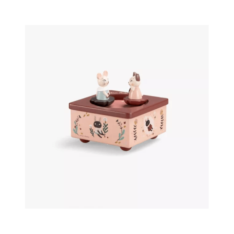 Boîte à musique aux couleurs de la gamme, reprenant les illustrations et personnages de la collection. Giboulée le Chat et Brume la souris tournent et dansent sur une jolie musique pour bercer et endormir bébé.