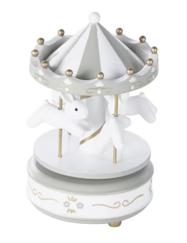 Ce produit est extrait d'une liste de naissance déposée sur Kadolog. Kadolog permet de créer des listes de naissance en toute liberté. Il est possible d'ajouter toutes vos envies cadeaux et de recevoir les dons directement sur votre compte. Avec les dons reçus, vous êtes alors libre d'aller acheter vos produits (comme ce 'Boite à musique carrousel ') où et quand vous le souhaitez.
